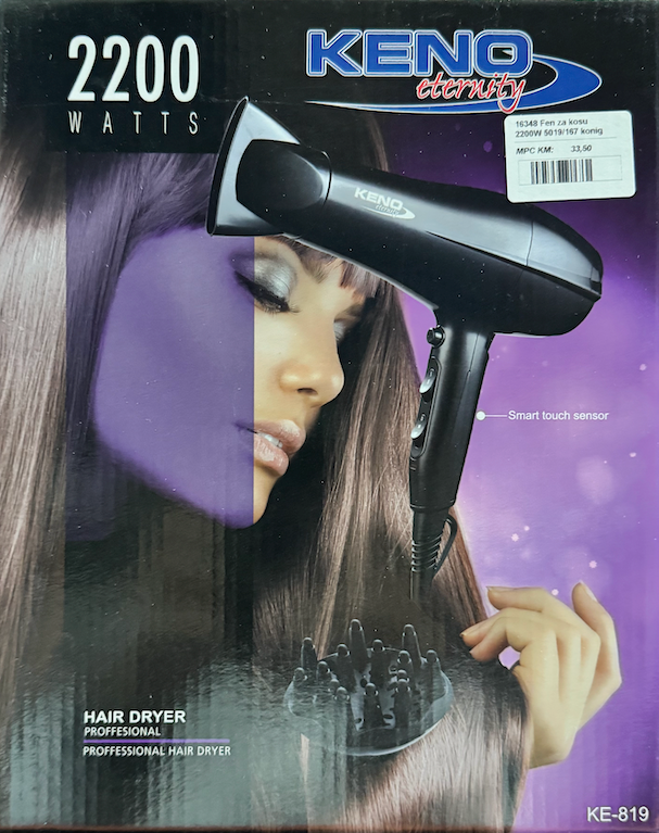 KENO Eternity KE-819 nudi 2200W snage i pametni touch senzor za intuitivno i lako korištenje. Idealno za brzo sušenje, oblikovanje i postizanje frizura kao iz salona.