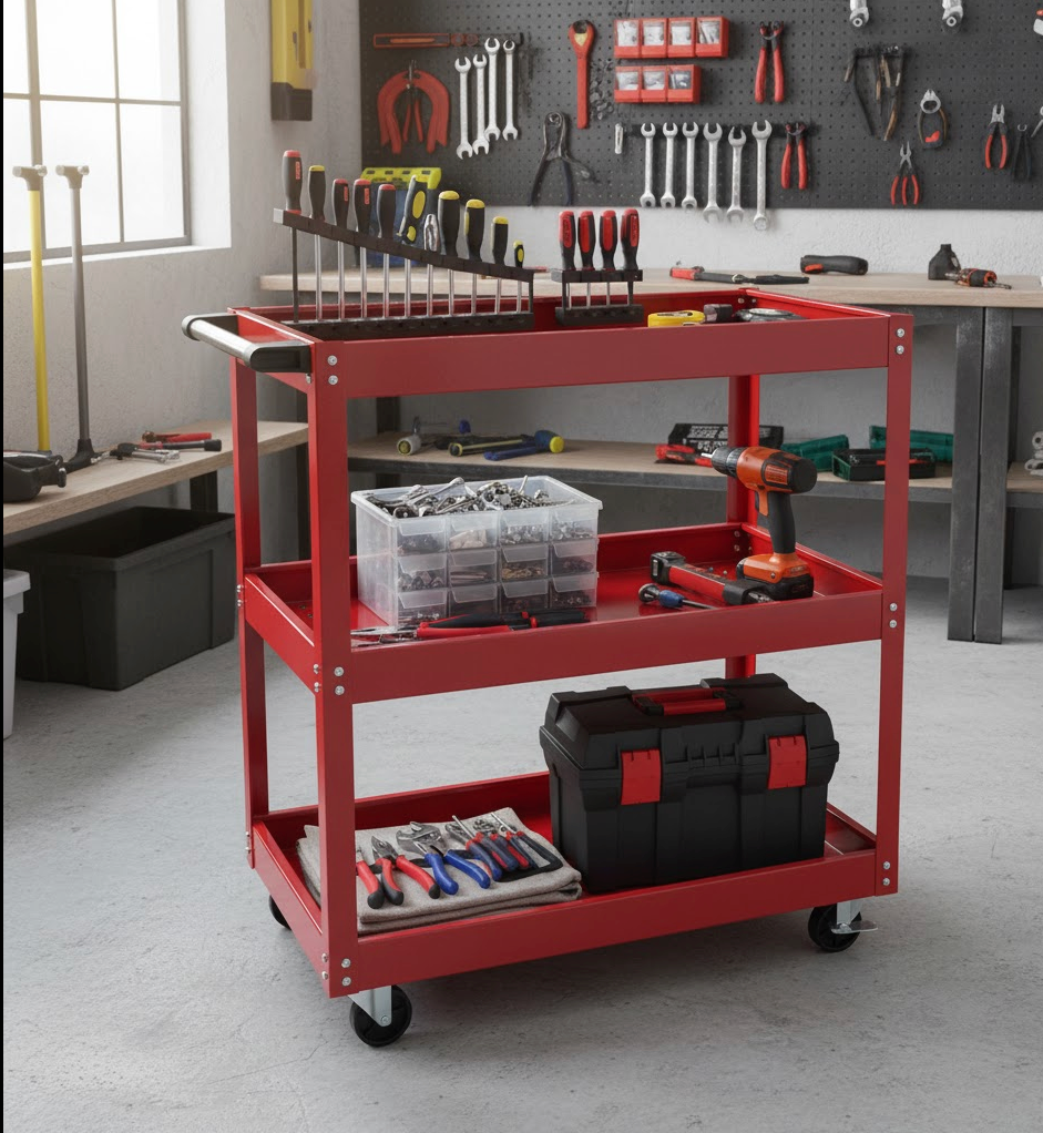 Pokretna kolica za alat predstavljaju idealno rješenje za profesionalne mehaničare, majstore i sve koji žele da svoj alat drže uredno organizovanim i lako dostupnim. Zahvaljujući čvrstoj konstrukciji i kvalitetnim točkićima, kolica omogućavaju jednostavno pomjeranje i efikasnost pri svakodnevnom radu.